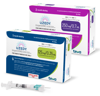 References: 1. UZEDY® (risperidone) extended-release injectable suspension Current Prescribing Information. Parsippany, NJ: Teva Neuroscience, Inc. 2. Data on file. Parsippany, NJ: Teva Neuroscience, Inc.